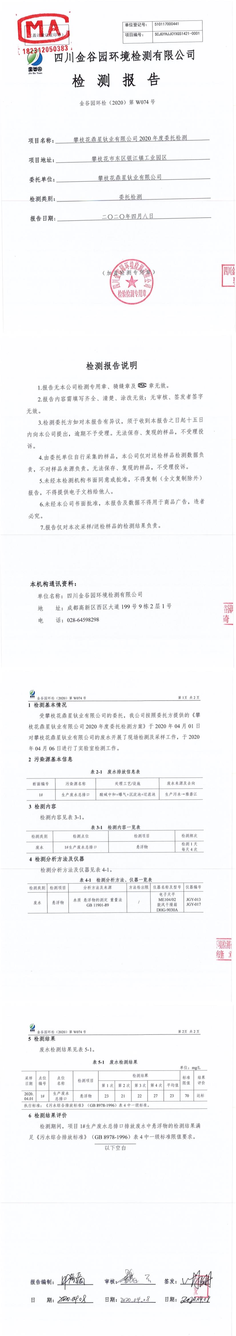 2020W073攀枝花鼎星鈦業有限公司渣場滲濾液項目委托檢測